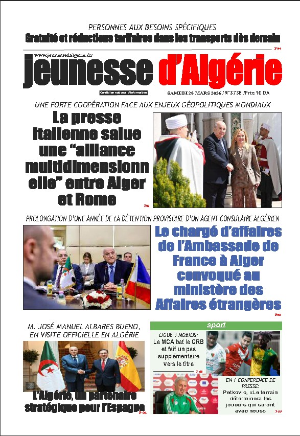 AlgérieConseil des ministres : l’Algérie récupèrera auprès de la Suisse plus de 110 millions de dollars de fonds détournés et gelés AlgérieLe Général d’Armée Saïd Chanegriha préside la réunion annuelle des cadres des infrastructures militaires AlgérieLa dépouille de l’ancien président de la République, le moudjahid Liamine Zeroual, inhumée au cimetière de Bouzourane à Batna AlgérieLe président de la République rend hommage à l’ancien président de la République, le Moudjahid Liamine Zeroual À LA UNE Conseil des ministres : l’Algérie récupèrera auprès de la Suisse plus de 110 millions de dollars de fonds détournés et gelés avril 5, 2026 Le Général d’Armée Saïd Chanegriha préside la réunion annuelle des cadres des infrastructures militaires avril 4, 2026 La dépouille de l’ancien président de la République, le moudjahid Liamine Zeroual, inhumée au cimetière de Bouzourane à Batna mars 30, 2026 Le président de la République rend hommage à l’ancien président de la République, le Moudjahid Liamine Zeroual mars 29, 2026 Algérie Conseil des ministres : l’Algérie récupèrera auprès de la Suisse plus de 110 millions de dollars de fonds détournés et gelés avril 5, 2026 Le Général d’Armée Saïd Chanegriha préside la réunion annuelle des cadres des infrastructures militaires avril 4, 2026 La dépouille de l’ancien président de la République, le moudjahid Liamine Zeroual, inhumée au cimetière de Bouzourane à Batna mars 30, 2026 Le président de la République rend hommage à l’ancien président de la République, le Moudjahid Liamine Zeroual mars 29, 2026 LatestPopular Conseil des ministres : l’Algérie récupèrera auprès de la Suisse plus de 110 millions de dollars de fonds détournés et gelés avril 5, 2026 Le Général d’Armée Saïd Chanegriha préside la réunion annuelle des cadres des infrastructures militaires avril 4, 2026 La dépouille de l’ancien président de la République, le moudjahid Liamine Zeroual, inhumée au cimetière de Bouzourane à Batna mars 30, 2026 Le président de la République rend hommage à l’ancien président de la République, le Moudjahid Liamine Zeroual mars 29, 2026 Conseil des ministres : l’Algérie récupèrera auprès de la Suisse plus de 110 millions de dollars de fonds détournés et gelés avril 5, 2026 M. Attaf représente le président de la République aux travaux de la 34e session ordinaire du Sommet de la Ligue arabe et de la 5e session du Sommet arabe du développement mai 15, 2025 Boumerdes : Le ministre de l’Industrie inaugure la raffinerie de sucre « Tafadis » à Larbatache mai 15, 2025 Sanctions : l’USM Alger écope d’un match à huis clos mai 15, 2025 Sports sportsPréparation du Mondial 2026 : en match amical, Algérie cartonne face au Guatemala (7-0)admin mars 27, 2026 sportsMondial-2026 : les Verts entament leur stage en Italieadmin mars 24, 2026 sportsMondial 2026 – Préparation : Petkovic dévoile une liste de 27 joueurs, six nouveaux éléments sélectionnésadmin mars 18, 2026 Algérie sportsCAN-2025 : le Sénégal déchu de son sacre africain, vives réactions d’indignation et de condamnation de la décision de la CAFadmin mars 18, 2026 Economie Mine de zinc et de plomb de Béjaia : un projet stratégique aux retombées économiques indéniables mars 19, 2026 Conventions BNA-FGAR pour la garantie des crédits d’exploitation janvier 20, 2026 L’alimentation des comptes commerciaux par les moyens de paiement scripturaux ou par versement d’espèces autorisée janvier 5, 2026 L’importation de voitures de moins de 3 ans réservée exclusivement aux citoyens, et non aux entreprises novembre 25, 2025